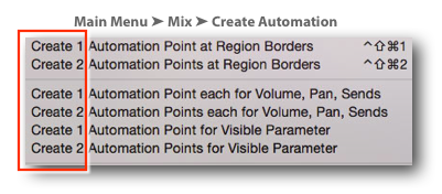 Please note that Logic Pro provides for those commands the option to create 1 or 2 Control Points at specific borders.