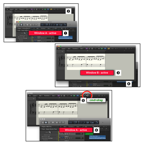 Whenever you want to move an Inactive Window by dragging its Window Header without having it become the Active Window, just hold down the command key while dragging it ➎. That''s it, Window A stays active ➏ and you can move any windows around "underneath".