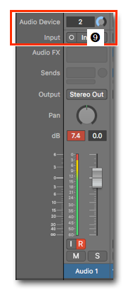 Remember the Audio Device Controls knob ➒ on top of the Audio Channel Strip. This is technically an Input Gain control. However, instead of adjusting the incoming signal in Logic, it lets you remotely adjust the input gain on the external audio interface (has to be supported by the manufacturer).