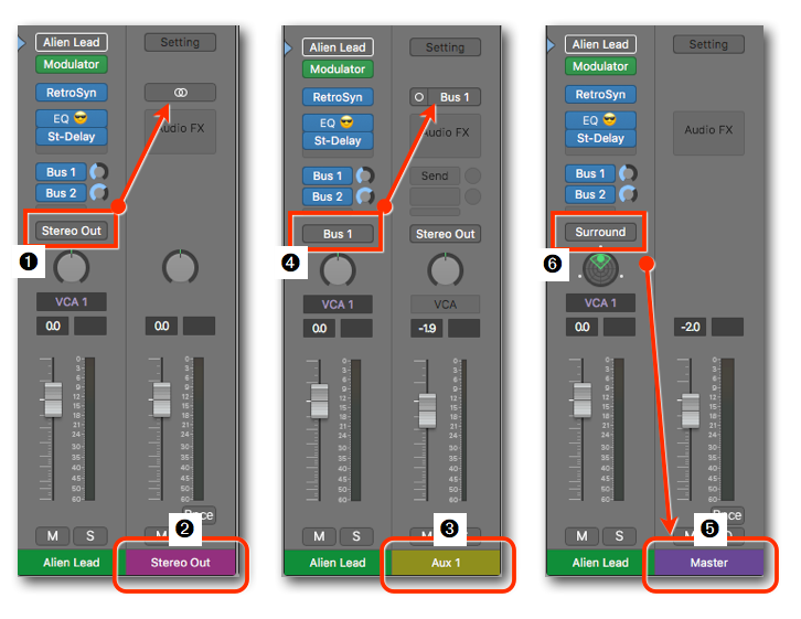 - Master Channel Strip ➎: If you''ve selected Surround ➏