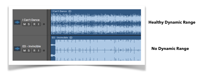 The perceived loudness of a song increases when the song has less dynamic. Unfortunately, producers and record companies used that to game the system by compressing their song more and more and, therefore, making their songs sound louder compared to other songs when played on the radio (because “louder sounds better”). Pretty soon, everybody started to use that same technique, using less and less dynamics, and the “Loudness War” was in full swing with major casualties, good sounding records. More about that later.