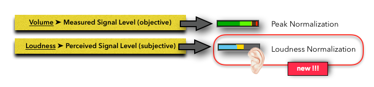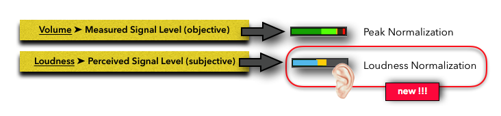 The major achievement of the new Loudness Normalization standard is that brilliant engineers found a method of how to measure Perceived Loudness with special “Loudness Meters” and establishing a “Target Level” that the audio program is referenced to. That means, a shift from Peak Normalization to Loudness Normalization, so all audio is normalized (referenced) to that Target Level and, therefore, establishing a consistent Perceived Loudness for the listeners throughout different audio material.