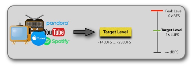 •As a general rule, broadcast systems use a lower Target Level of -23 LUFS or 24 LUFS, while audio streaming services use a higher Target Level around the recommended -16 LUFS.