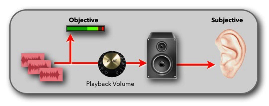 The term “Perceived Loudness” is especially important when listening to a sequence of songs and you determine if you feel that all the played songs have about the same loudness or if you feel the need to turn the playback volume up or down for a specific song or part of the program you are listening to (on the radio or TV) to achieve some consistency of their playback level.